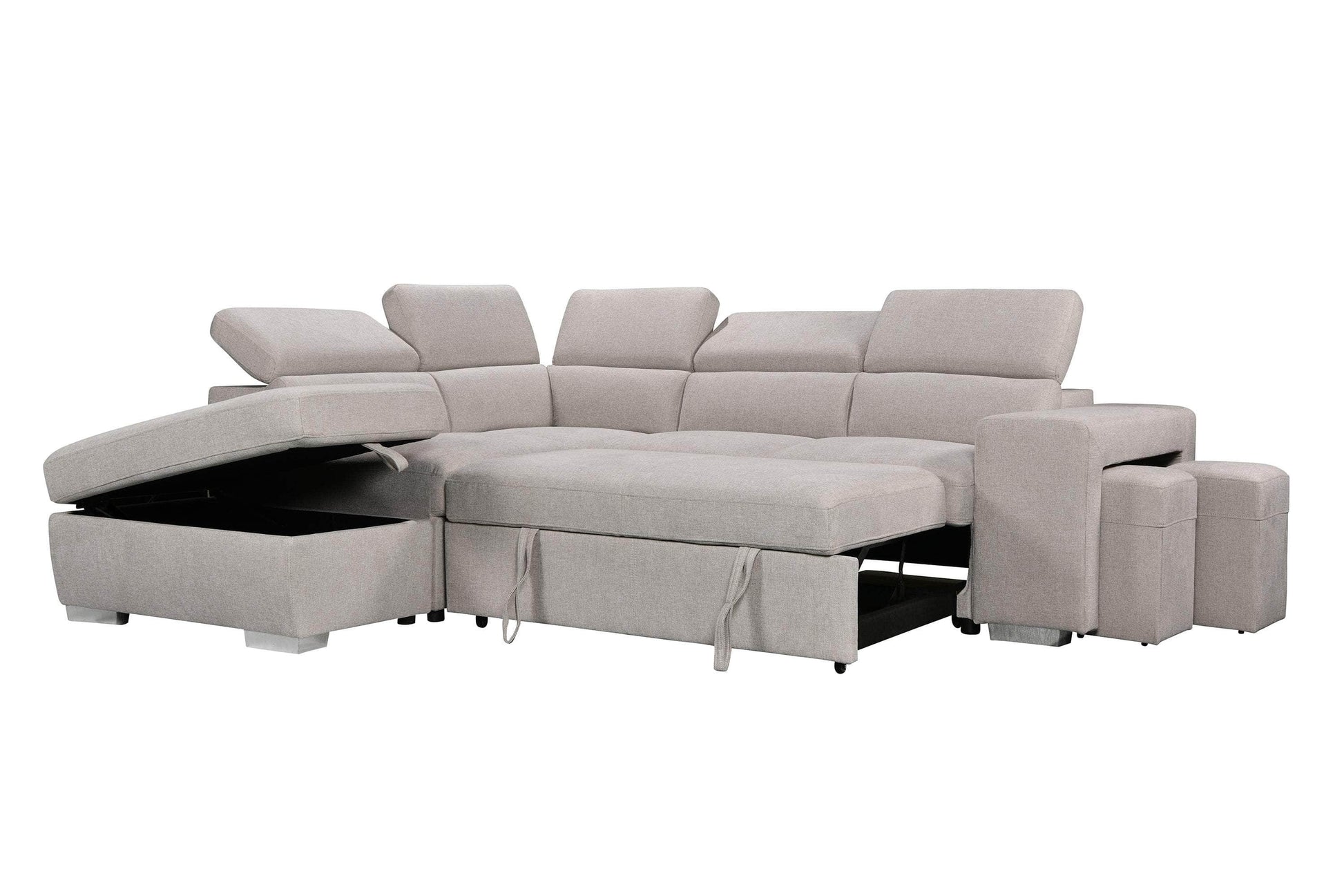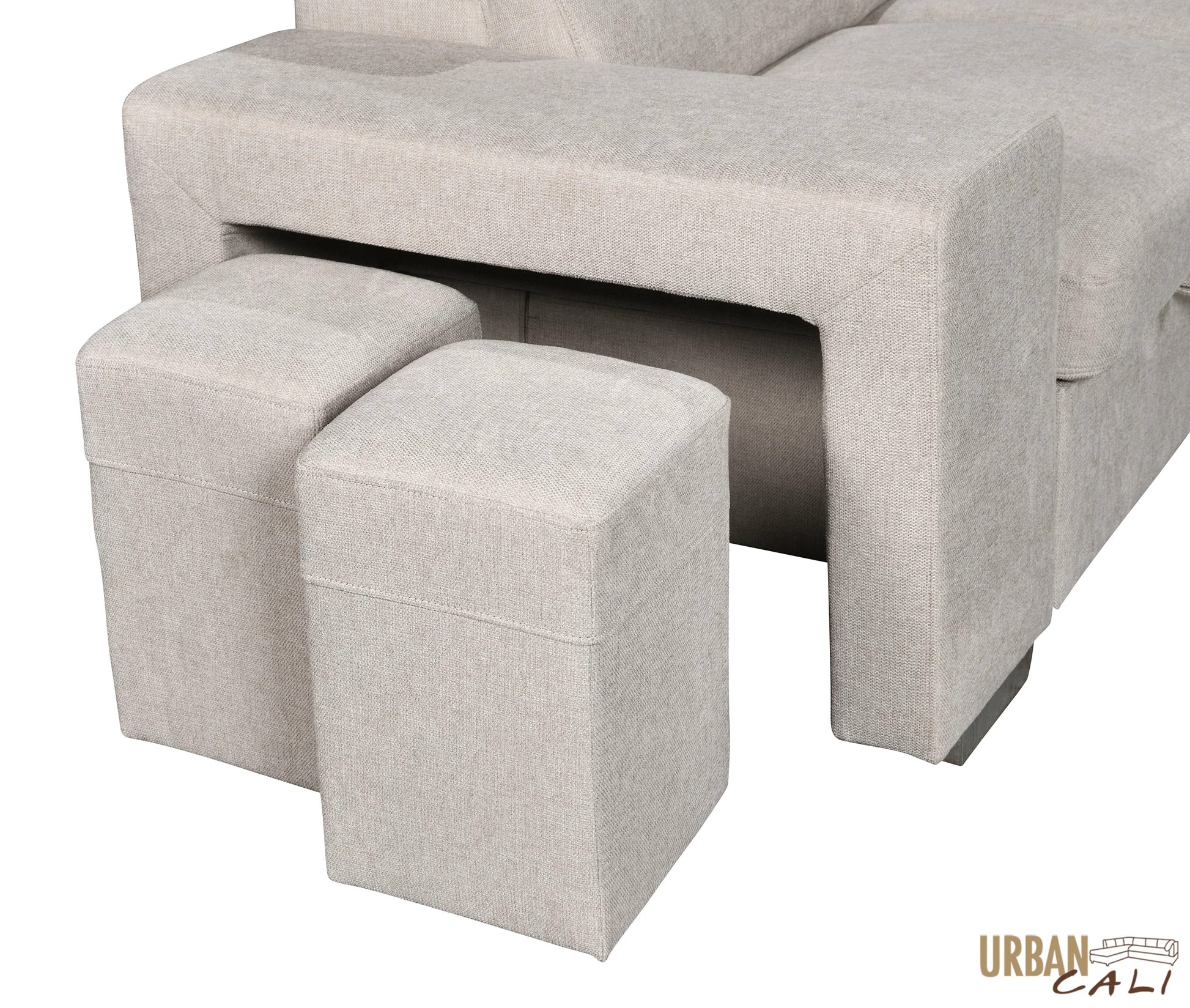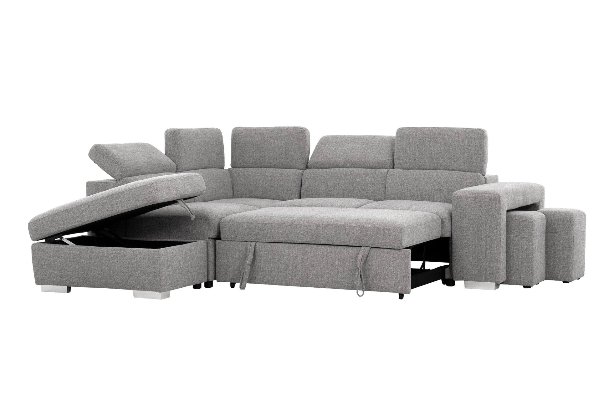Pasadena Large Sleeper Sectional Sofa Bed with Storage Ottoman and 2 Stools - Available in 3 Colours