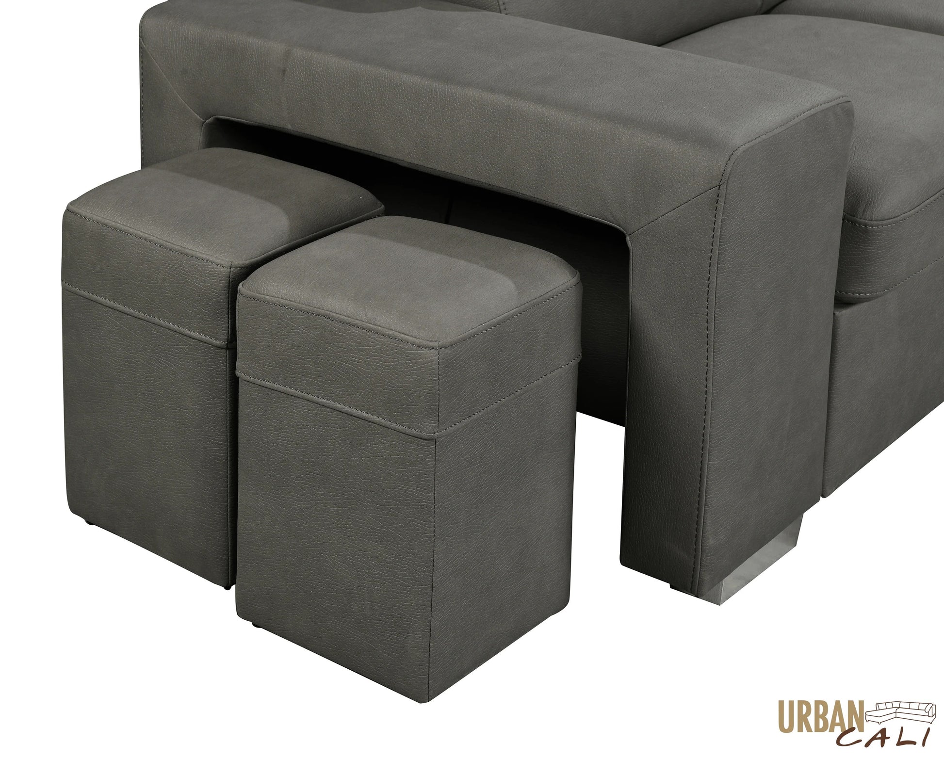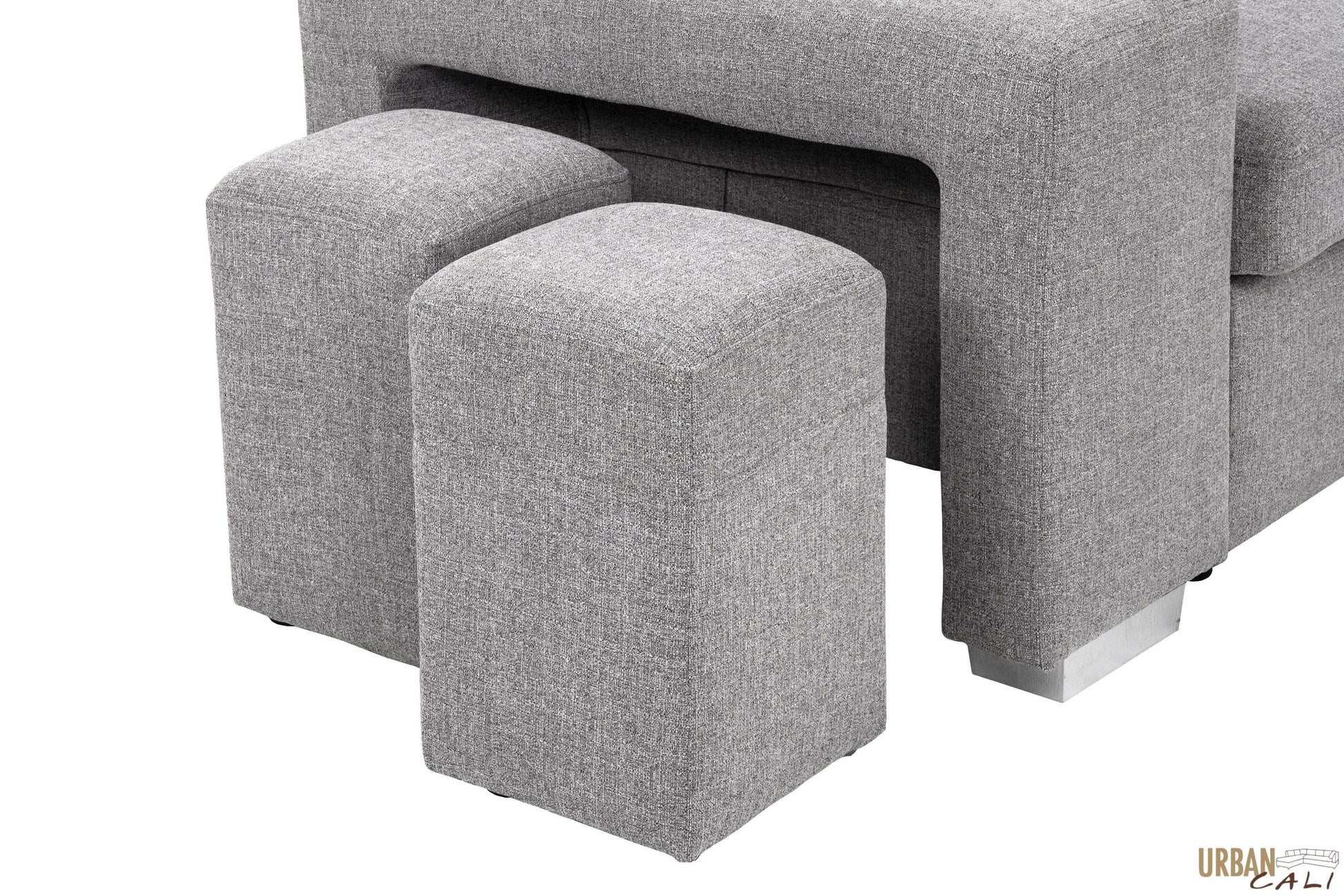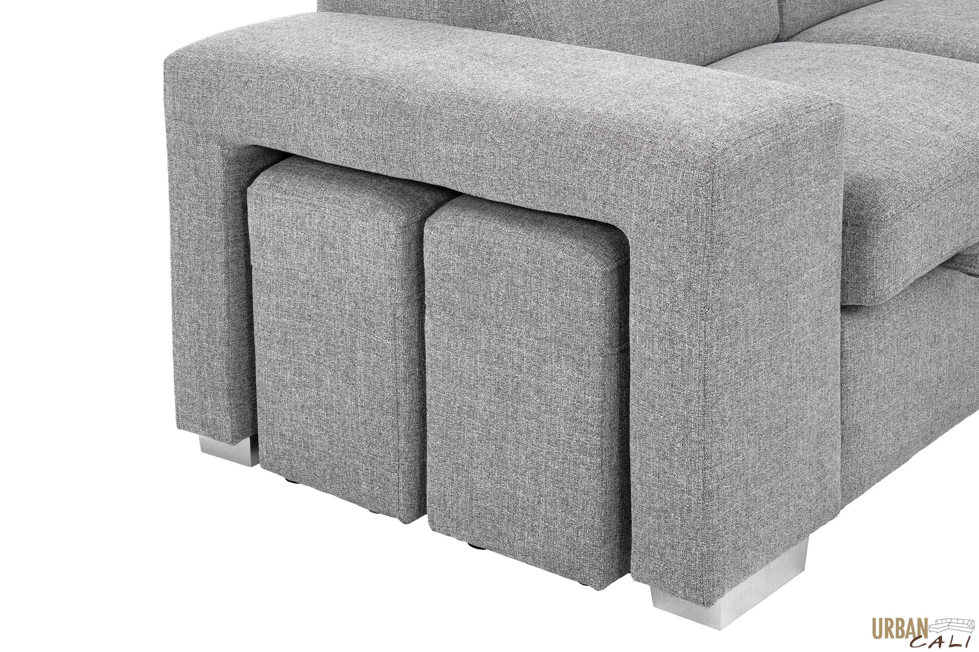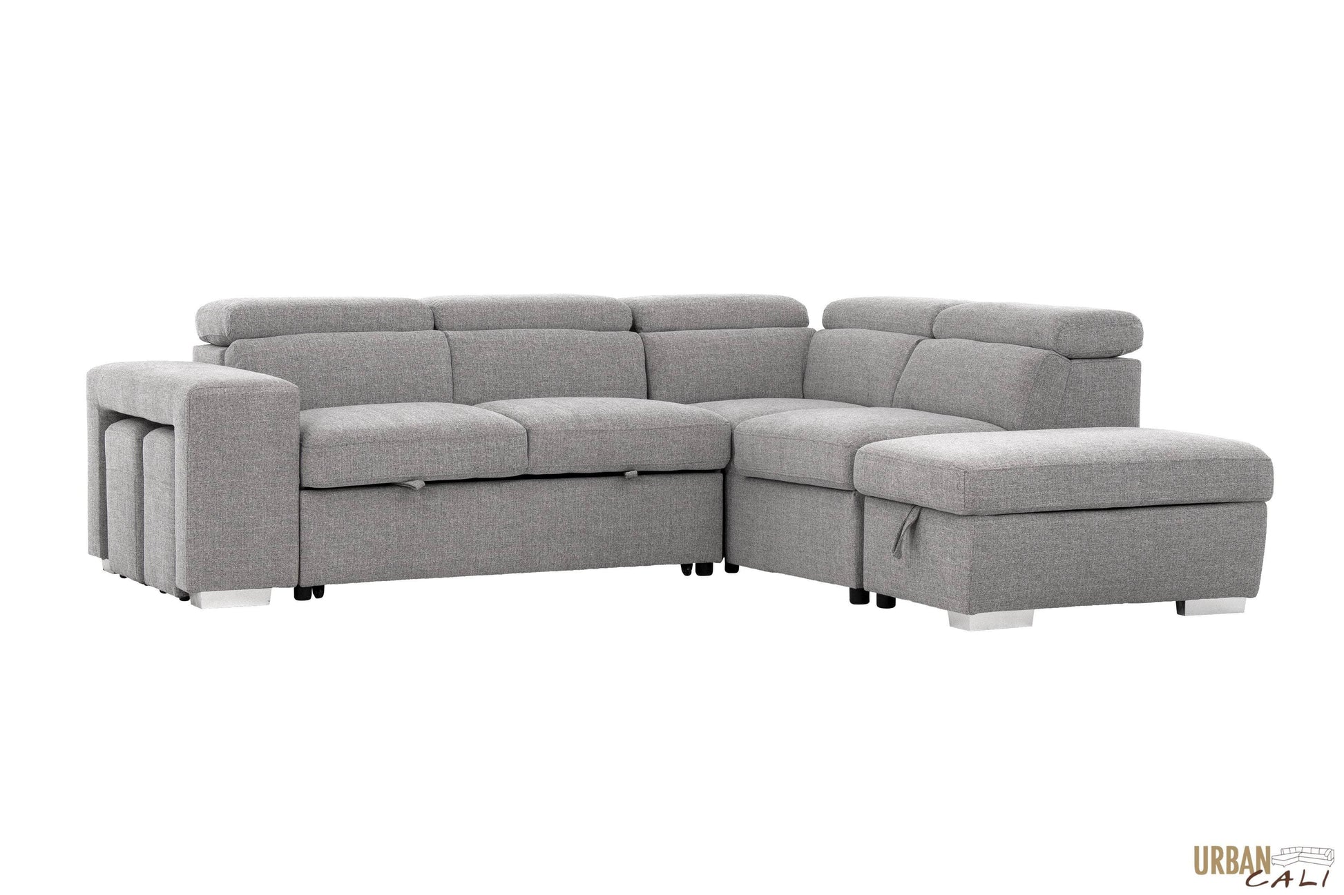 Pasadena Large Sleeper Sectional Sofa Bed with Storage Ottoman and 2 Stools - Available in 3 Colours