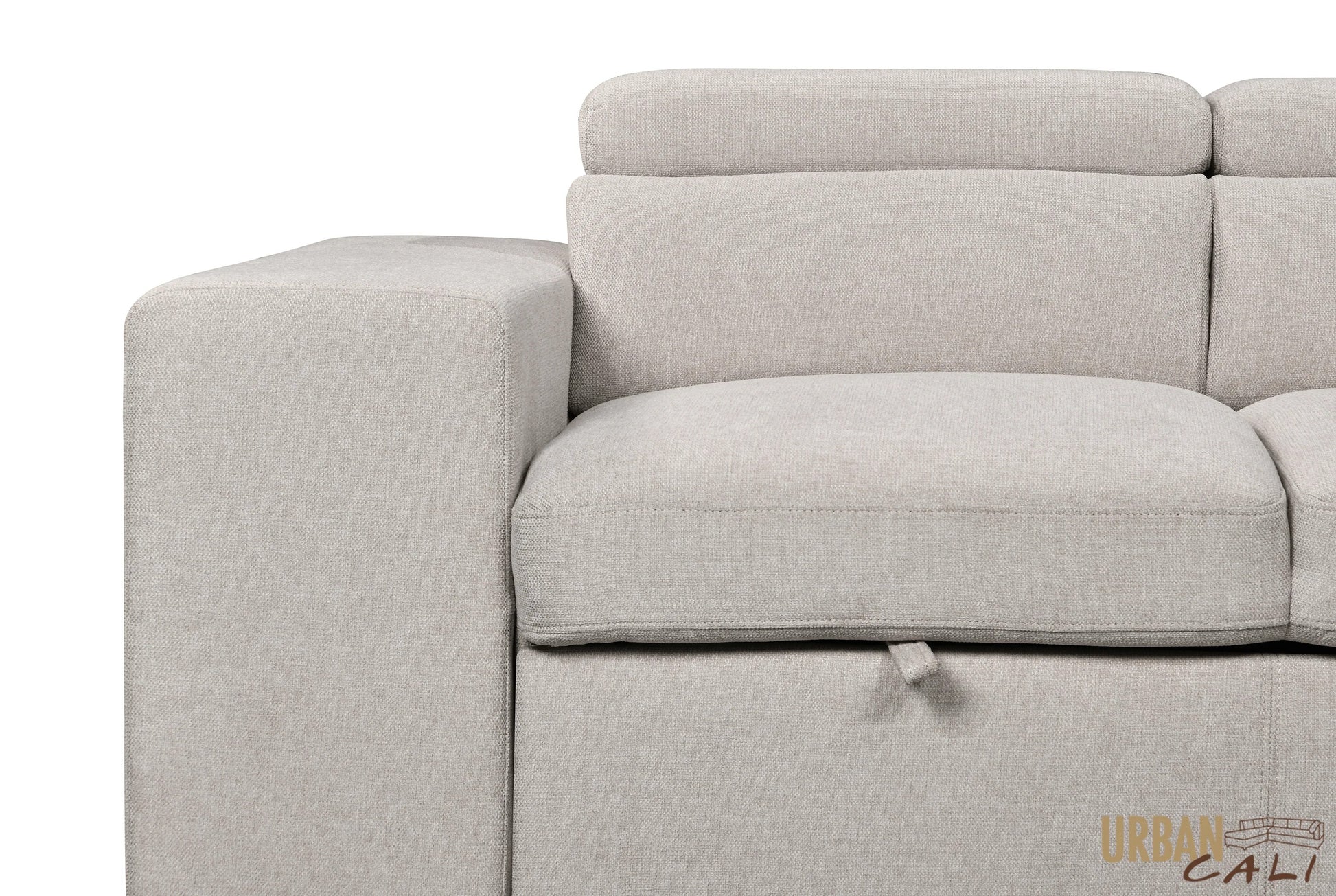 Stylish and functional, the Pasadena Loveseat Sleeper Sectional with Storage Ottoman, is a great place to entertain guests, and the built in sleeper is perfect for the end of the night. The storage ottoman helps keep things organized, and will easily hold blankets or pillows.