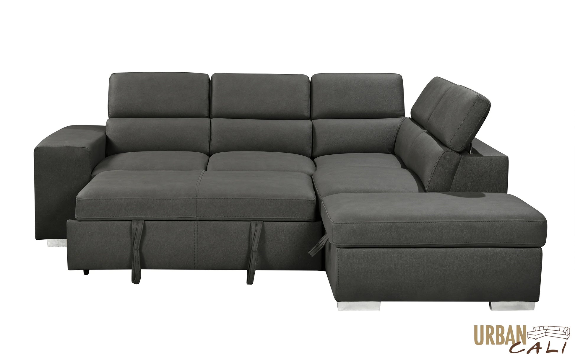 Calabasas Minky Corduroy Reversible Sleeper Sectional Sofa Bed with Storage Chaise – Available in 2 Colours